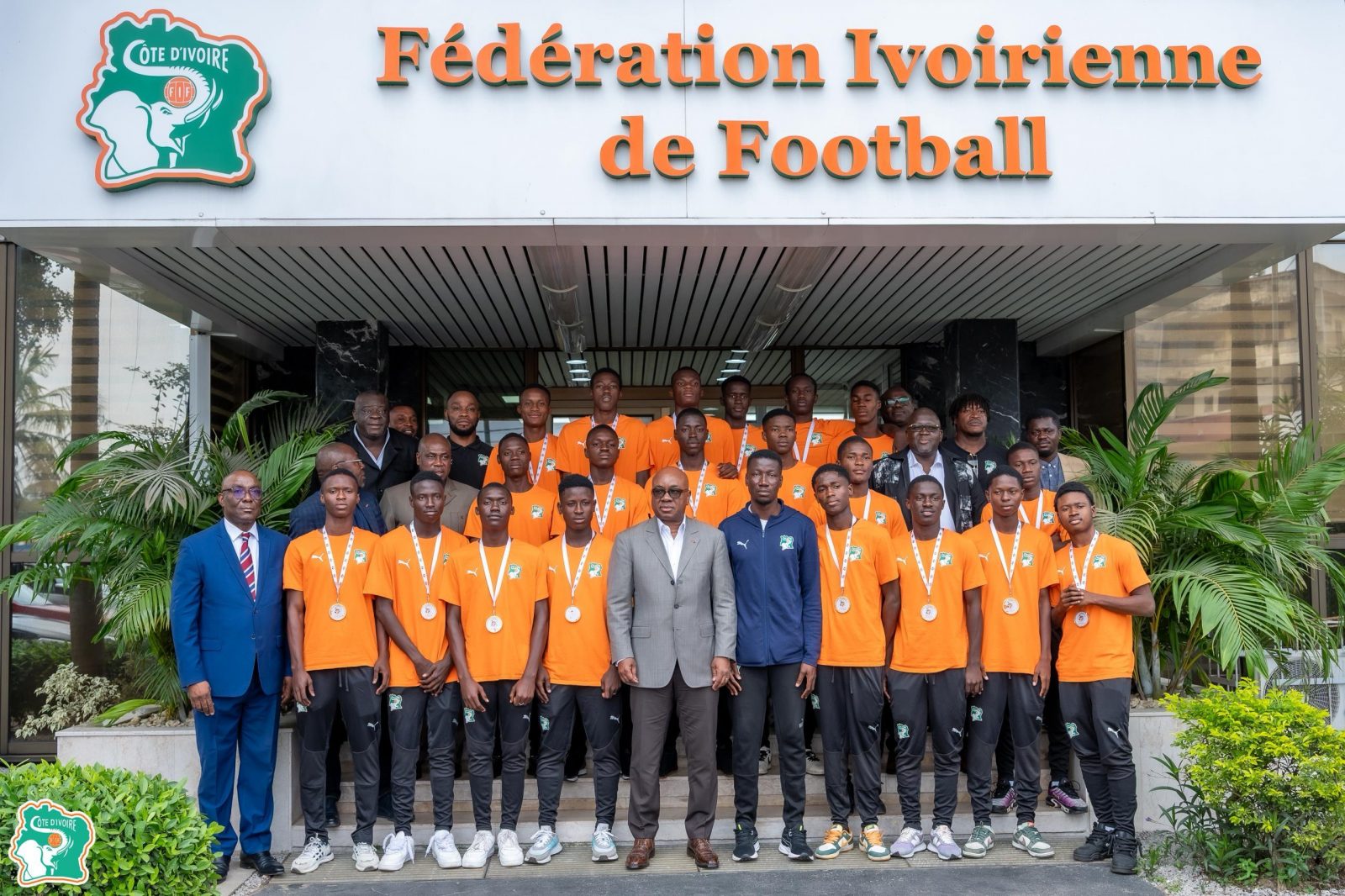 C’est le président de la FIF lui-même, Yacine Idriss Diallo, qui a tenu à féliciter les jeunes champions en personne, entouré de plusieurs membres influents de la maison de verre de Treichville, dont Salif Bictogo, président de la ligue professionnelle, Armand Gohourou, directeur exécutif, Laurent Boli, vice-président de la commission en charge du développement du football jeune, ainsi que Hervé Siaba, Hamed Ouattara, Abdoulaye Diabaté et d’autres membres du comité exécutif.